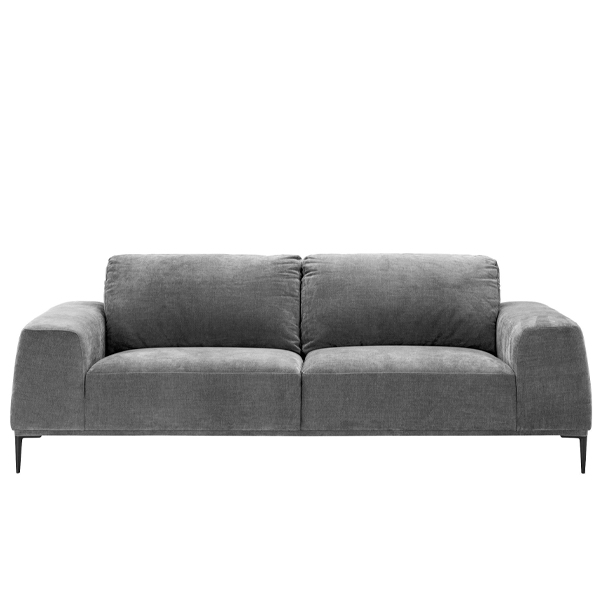 Стильный диван в серой текстильной обивке (доступен в молочном цвете) на черных ногах.