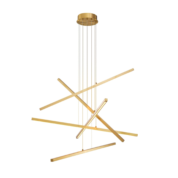 Современный подвесной светильник, сделанный из шести прямоугольных брусков с покрытием под античную латунь и встроенными светодиодными лампами, создаст красивые световые эффекты в вашем интерьере. Светильники можно подвесить в любом желаемом положении, отрегулировав длину кабеля.